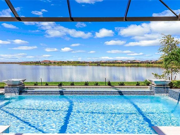 Discover refined waterfront living in this 3,178 sq. ft. 4-bedroom, 3.5-bath estate home, perfectly situated on the shimmering shores of WildBlue’s 450 - acre boatable lake - the largest in the community. This residence is the best-selling Baneberry floorplan, WCI’s largest single-story home built in WildBlue, offering the perfect balance of space, elegance, and function in one of Southwest Florida’s most coveted addresses. Set on a quiet, dead-end street within the community, the home enjoys a peaceful location with minimal through traffic, offering added privacy and safety. From the back, you’ll love the incredible lake view, the perfect backdrop for relaxing evenings or entertaining friends and family. No detail has been overlooked in the $250,000+ in upgrades showcased throughout. The home welcomes you with soaring 12-foot ceilings, impact windows and doors, and solid core interior doors that reflect both craftsmanship and quality. The spacious open layout is anchored by a custom built-in feature wall in the living room, enhancing both beauty and function. Step outside to your private oasis: an extended lanai with outdoor kitchen, saltwater pool with striking spillover bowls, and a beautifully upgraded landscape design complete with professional uplighting. Whether entertaining or simply relaxing lakeside, the outdoor living space is designed for year-round enjoyment. Additional highlights include: Natural gas cooking, Custom outdoor living area built-in, Impact windows and doors throughout, Quartz countertops and many other luxury finishes throughout. WildBlue offers world-class amenities, including resort-style pools, a private clubhouse, multiple dining options, fitness center, tennis, pickleball, and direct access to a boatable lake lifestyle - making every day feel like a vacation. This is more than a home; it’s a lifestyle. Schedule your private tour of 17338 Blue Sapphire Drive today and experience WildBlue lakefront luxury at its finest.
