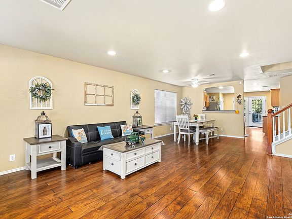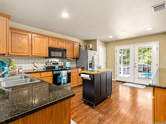Very motivated sellers! Willing to help with closing costs. Welcome to Steubing Ranch! Beautiful kitchen complete with stainless steel appliances, additional cabinets/countertop installed, and granite countertops throughout. TWO main bedrooms (1 upstairs & 1 downstairs). Downstairs primary bathroom has double vanity sinks and walk-in closet. Upstairs you are met with a spacious game room that can easily be converted to a 5th bedroom. Other additional rooms are located upstairs and each have ceiling fans within them. Laundry room is upstairs and home comes with a water softener. Huge backyard with a deck surrounding your above ground pool. Close proximity to Steubing Ranch and Longs Creek elementary and Harris Middle School, very close access to loop 1604, and just a short trip to Randolph AFB. Within minutes of Bulverede Shopping Center and Bulverde Marketplace where your neighborhood HEB is located.
