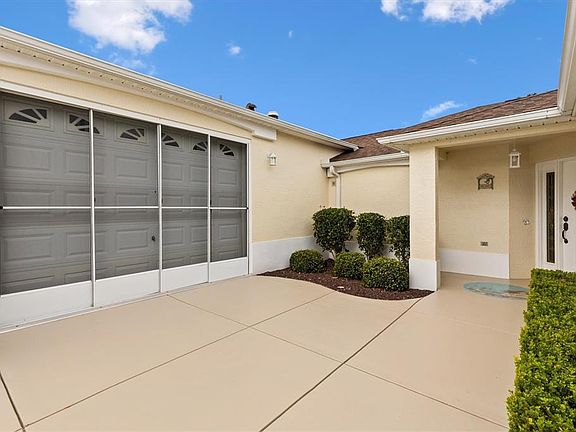 Perched high above the #1 Tee box of the Erinn Glenn nine hole course of the renowned NANCY LOPEZ CHAMPIONSHIP GOLF COURSE, this extraordinary residence in THE VILLAGES, FLORIDA offers sweeping water and fairway views that inspire pure tranquility. NO BOND! From the moment you arrive, it’s clear there is no other home quite like this one. Its elevated position, thoughtful design, breathtaking vistas make it a rare find in one of Florida’s most coveted active-lifestyle communities. Inside, sophistication meets comfort in a layout that seamlessly blends elegance with versatility. The main home features three spacious bedrooms and a beautifully updated Kitchen appointed with NEW GE Profile smart appliances, pull-out shelving, large walk-in pantry, under cabinet lighting, and custom pot drawers. The adjoining Dining and Living areas flow effortlessly together, enhanced by ENGINEERED HARDWOOD Flooring and expansive sliding glass doors that fully recede, opening to panoramic views of the golf course, wrap around birdcage, custom designed POOL with GAS HEAT PUMP, creating a true indoor-outdoor living experience. The Primary suite is a serene retreat, with a bay window perfectly framing the #1 green and glistening water. The ensuite bath includes dual vanities and a generous walk-in closet, while each sunrise brings a new display of color across your private sanctuary. The second bedroom features a large walk-in closet, and the third bedroom includes a closet and a safe that will convey with the home. Designed with entertaining in mind, the “PARTY ROOM” is an impressive showpiece, fully furnished and complete with a custom-built bar and overhead projector. Whether hosting intimate gatherings or lively celebrations, this space offers both flexibility and flair. With its own FULL BATH, ample storage, and direct access to the screened pool and birdcage area through receding sliding doors, this area of the home could easily serve as an INDEPENDENT GUEST SUITE OR MULTIGENERATIONAL LIVING SPACE. The garage apartment further expands the home’s versatility, Featuring a MURPHY BED, Cabinetry, QUARTZ countertops, sink, refrigerator, microwave, overhead door, and a PRIVATE ENTRANCE through the courtyard. Currently showcased with a full-size pool table and slot machines, it provides endless options for recreation, hobbies, or private guest accommodations. Additional Features include TWO HVAC systems, a whole-home water treatment system, whole house central vacuum system, surround sound system, TILE FLooring throughout secondary spaces, and a well-appointed laundry room with a wall-mounted ironing board, solar tube, and oversized walk-in storage room. The birdcage was RESCREENED in 2025, and a NEW ROOF (2020). Throughout the home you’ll find AMPLE CLOSETS and thoughtfully designed storage spaces. Every detail of this residence has been crafted to elevate daily living, where each SUNRISE over the fairway feels like a private celebration of light and serenity. Nestled within The Villages, a premier golf cart community where leisure, comfort, and luxury intertwine, this remarkable home embodies resort-style living at its finest! Maintenance free yard, a short distance to the Legacy pool and famous Nancy Lopez Country Club for dining, medical, banking, retail stores and VA clinic all just a short, pleasant golf cart ride away. This is truly a MUST-SEE home to fully appreciate its beauty and uniqueness! ALL furnishings available for separate purchase.