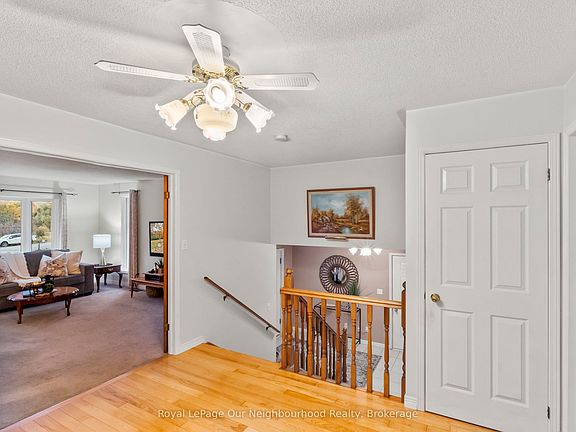 This inviting home is perfect for entertaining and everyday living! Enter through french doors into the bright living room, flowing seamlessly into a dining area with hardwood floors and a spacious kitchen with rich wood cabinets. The large primary suite offers plenty of closet space, a 4pc semi-ensuite, and deck access overlooking your private backyard. A second bedroom completes the main level, while the finished lower level adds a cozy family room with a gas fireplace, a third bedroom, and a 3pc washroom. Set on just over an acre of treed privacy with an attached 2-car garage and a large detached garage/shop with hydro. Just minutes to Brighton and the 401- ideal for growing families or those seeking extra space.