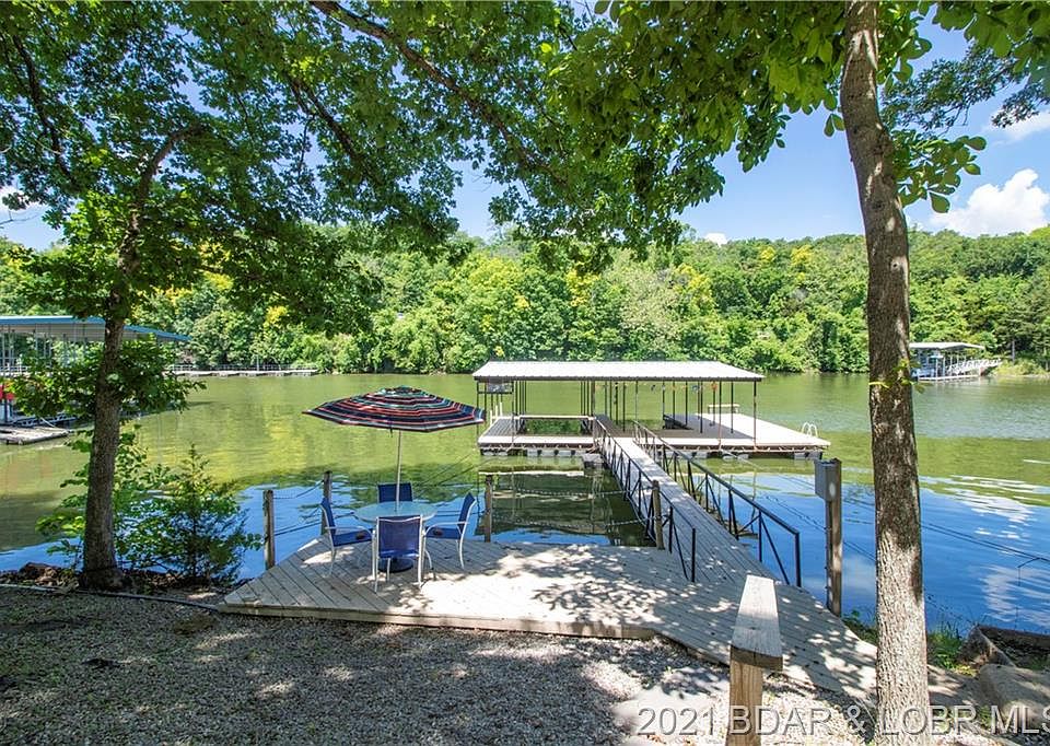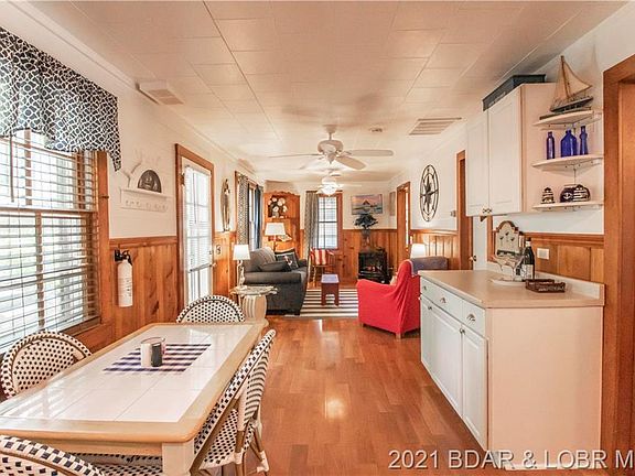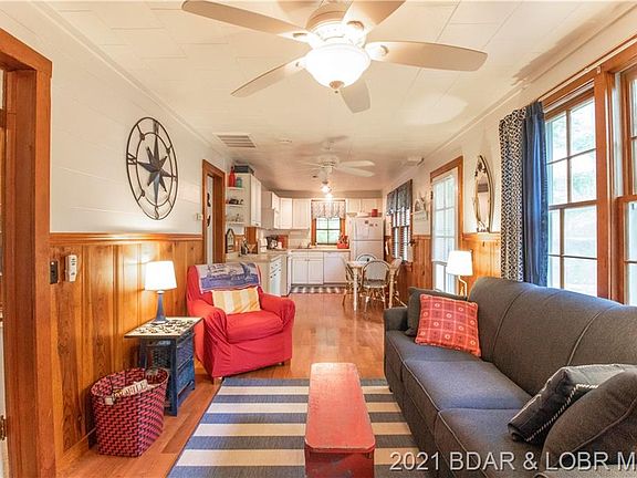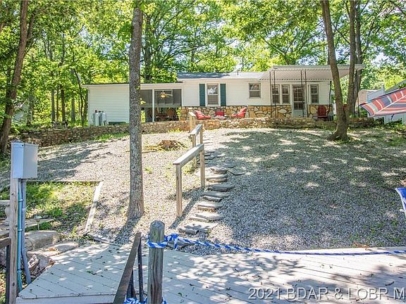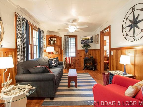 Charming and Delightful Lakefront Cabin surrounded by large shade trees and nestled in a deep water cove, located in the Heart of Osage Beach. This is truly a rare find and will bring back many fond memories of how the Lake once was. Home has 2 bedrooms, 1 bath, open floor plan, and knotty pine paneling. Outside of home is native stone and vinyl. Newer roof and new floors installed in 2020. Lots of outside living area with covered patio to lakeside, martini deck located on water's edge, and table and chairs on carport. Storage shed. Room to park several cars. Dock is 2 well with large swim platform. Located just across the cove from Tan-Tar-A so one can enjoy the beautiful fireworks display. Boat ramp just a few hundred feet away. The home sits just off of Highway KK and is only minutes away from fine restaurants, great shopping, and many other fun things to see and do, both by land, and water. Can do Nighty Rentals! All This for UNDER $300,000!! Hurry and See Today!