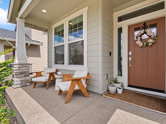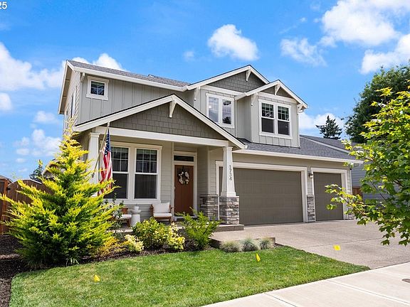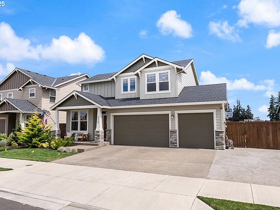 Welcome to this beautifully crafted 2023-built Craftsman home in the desirable Dodds Farm neighborhood of Canby! This 3-bedroom, 2.5-bath residence offers over 2,370 sq ft of thoughtfully designed living space, including a main-level primary suite with a luxurious soaking tub, dual vanities, and walk-in closet.The open-concept layout features a stunning chef’s kitchen with granite countertops, a large island, stainless steel appliances, gas range, and a walk-in pantry—perfect for entertaining. A cozy gas fireplace anchors the living room, while durable laminate floors add modern warmth throughout the main level. Beautiful Mountain View from kitchen and great room!Upstairs, enjoy a spacious bonus room ideal for a media room, play space, or home gym. A dedicated main-floor office/den provides flexibility for remote work, home school or hobbies.Outside, the fully landscaped yard includes a covered patio and sprinkler system, with a spacious 3-car garage offering ample storage. Energy-efficient upgrades include a tankless water heater, double-pane windows, and A/C.Located in a peaceful community with low HOA dues and close to top-rated Canby schools, parks, and shopping—this home blends modern convenience with timeless style.Don’t miss your chance to own this move-in ready gem—schedule your showing today!