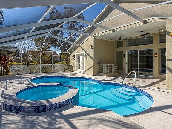 Oversized lanaiAttached spaLarge windowsFresh interiorSparkling poolOpen concept flowLarge quartz island