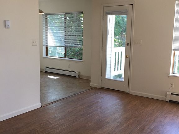 Open kitchen and living room w vaulted ceiling and skylights, large master bedroom with walk-in closet, full bath on main floor, bedrooms have balconies, sky light, boiler heat, gas range, dishwasher, washer/dryer in unit, some off street parking. Sorry, No Pets Tenants Pays a monthly flat rate of $225 for water, trash, common gas(heat) and minor grounds tenant puts own gas(H20 htr) and electric in own name and is not included in flat rate Lease Dates: 8/14/2025-8/8/2026 RHL-0002275 Occupancy 3 We've gone paperless, super easy to secure a lease with us, all paperwork (including leases) and payments done online from the comfort of your own home Fast and Easy!! All square footage measurements are approximate Information deemed reliable but not guaranteed