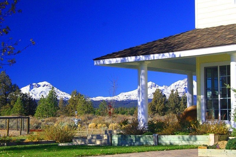 Situated at the base of the 3 Sisters. This home is situated on 5 acres with a view of 10 peaks and 10 buttes. Located between Tumalo and Sisters this adorable farm house has 3 bedrooms, 2 1/2 baths and over 1800 sq. ft. Recently renovated with many designer features. Full wrap around covered decks, Tigerwood floors, cast bronze fixtures, copper, granite, tile and custom plumbing and lighting. All of this and a huge multi-use garage, 108' corral and 1 outbuilding/barn.