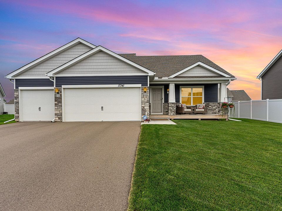 Discover the best of Lakeville living in the highly desirable Brookshire community. This neighborhood is designed for an active lifestyle with a resort-style clubhouse featuring a fitness center, yoga studio, outdoor pool, bocce ball, pickleball, basketball, multiple parks, playgrounds, and scenic walking trails. Just two years young and priced $40,000 less than comparable new construction, this meticulously maintained home offers a modern, open layout with vaulted ceilings on the main level, a spacious island kitchen with walk-in pantry, quartz counters, stainless steel appliances, tile backsplash, and an inviting electric fireplace. The front porch is perfect for relaxing evenings, while the finished lower level provides even more space to enjoy. With 5 bedrooms—including a convenient main-level bedroom—and a generous primary suite with private bath and oversized walk-in closet, there’s room for everyone. Lots of storage space, too! Smart home features, plus a 3-car garage add extra convenience. The home is located on a cul-de-sac, is beautifully landscaped and is move-in ready. You’ll love being just a short stroll from the clubhouse. Available only due to relocation—this is a rare opportunity to own in Lakeville’s most sought-after community.