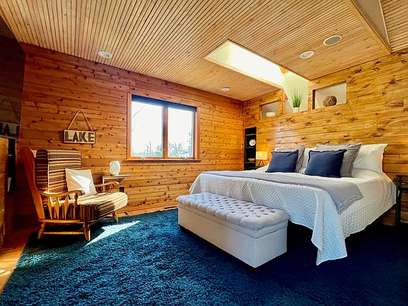 King-size bed, 60" Smart TV, gas fireplace, full ensuite bath, vaulted ceilings with skylight