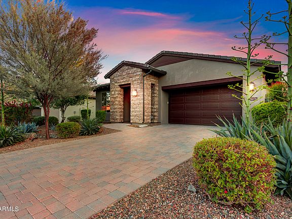 FULLY FURNISHED-TURN KEY-MOVE IN READY-3 bedroom 2 bath stunning Acacia Model located in the prestigious Trilogy at Verde River. This highly desirable Great Room floor plans is HIGHLY UPGRADED with a 15' GLASS MULTI-SLIDE DOOR that opens into an inviting backyard living space. Great flow for indoor and outdoor entertaining. Kitchen upgrades include Gourmet Stainless Steel GE Monogram Appliance package, upgraded cabinets, custom granite countertops, designer pendants and window coverings. Home has both Reverse Osmosis and Soft Water System. Primary suite is generously sized and offers a walk-in closet, double sinks, and a walk-in shower. Other notable upgrades include wood look tile, Ceiling Fans, highly upgraded Custom Designed Landscaping & Irrigation system, two tone paint throughout a nd a lot more. Garage has 4-ft EXTENSION. Private BACKYARD PARADISE with LARGE COVERED PATIO, sitting area with FIREPIT and BUILT IN BBQ. If Luxury and Resort Living is what you are after, this home is for you!