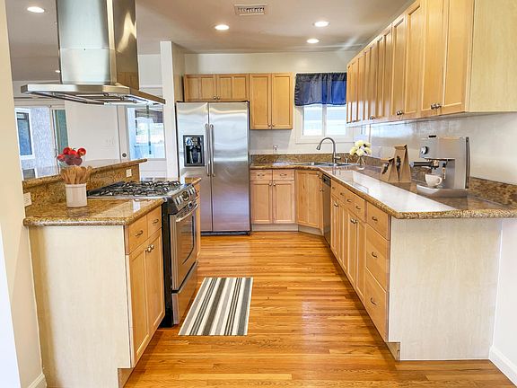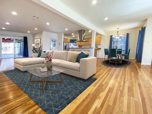 Rare opportunity to lease this bright and spacious 3 bed 2 bath, single-story home which features luxurious bathrooms, hardwood flooring, recessed lighting, and an immensely open floor plan with kitchen island and breakfast bar seating usually reserved for new construction homes. The primary bedroom is super desirable with a huge walk-in closet with built-ins plus an en-suite remodeled bathroom with dual vanities. The kitchen offers stainless steel appliances, wood cabinetry, granite countertops. Additional amenities include solar (electricity), in-unit laundry with upscale washer/dryer units, covered patio, and a nice, secluded backyard with a heated pool/spa. There is nothing like this home on the market. The detached garage and detached studio office are excluded (though can be separately negotiated).