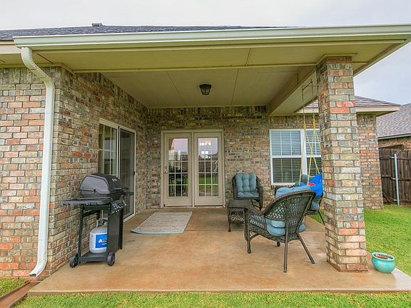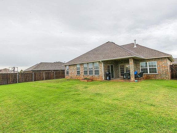 Convenient location with all the upgrades you're looking for! Charming home with a bright white kitchen, granite countertops, wood floors throughout main living space, stone fireplace, storm shelter and a nice fenced backyard... Open floor plan with 3 bedrooms plus a study/sunroom right off the living area (would make a perfect play room) Master suite features a large bedroom, separate tub & shower, split vanities and a huge master closet. Home backs up to walking trails so you won't have neighbors behind you!