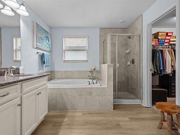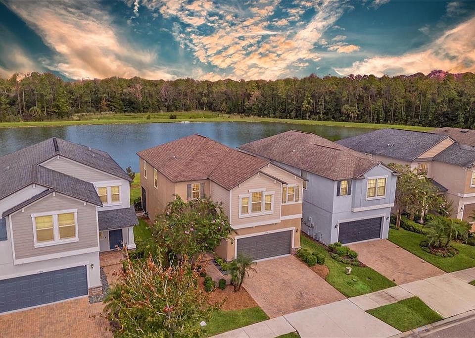 This 4-bedroom, 2.5-bathroom home with a loft and 2-car garage is located in the sought-after Bexley community of Land O’ Lakes. Positioned on a true premium pond lot on one of the quietest streets in the neighborhood, it offers open water views and an exceptional sense of privacy. A grand foyer with soaring ceilings opens to a spacious living and dining area featuring upgraded laminate flooring, crown molding, and large windows framing the pond. The open-concept kitchen includes white cabinetry, granite countertops, stainless-steel appliances, a natural gas range, and a breakfast bar. Adjacent dining space connects directly to the screened-in covered lanai—an inviting outdoor living area ideal for relaxing or entertaining with tranquil pond and sunset views. The fully fenced backyard extends the outdoor space, providing room for pets or play while maintaining clear water views. Upstairs, a generous loft separates the bedrooms into two wings for privacy and flexibility. Three secondary bedrooms share a full bathroom with double sinks and granite counters. On the opposite side, the primary suite includes crown molding, pond views, a large walk-in closet, and an en suite bath with double vanities, granite countertops, a garden soaking tub, and a glass-enclosed walk-in shower. The laundry room is conveniently located upstairs with built-in cabinetry for added storage. Living in Bexley means access to an award-winning master-planned community featuring resort-style amenities: two resort pools, a lap pool, splash zone, clubhouse with fitness center, game room, on-site café (Twisted Sprocket Café), playgrounds, dog parks, soccer fields, and more than 10 miles of scenic multi-use trails. The Hub at Bexley offers coffee, dining, and retail options just minutes from home. Conveniently located near SR 54 and the Suncoast Parkway, this property allows an easy commute to Tampa, local beaches, and the airport. Zoned for highly rated Pasco County schools and close to shopping centers, medical facilities, and everyday conveniences. Video tour available—discover the peaceful pond setting, open layout, and resort lifestyle of Bexley living today.