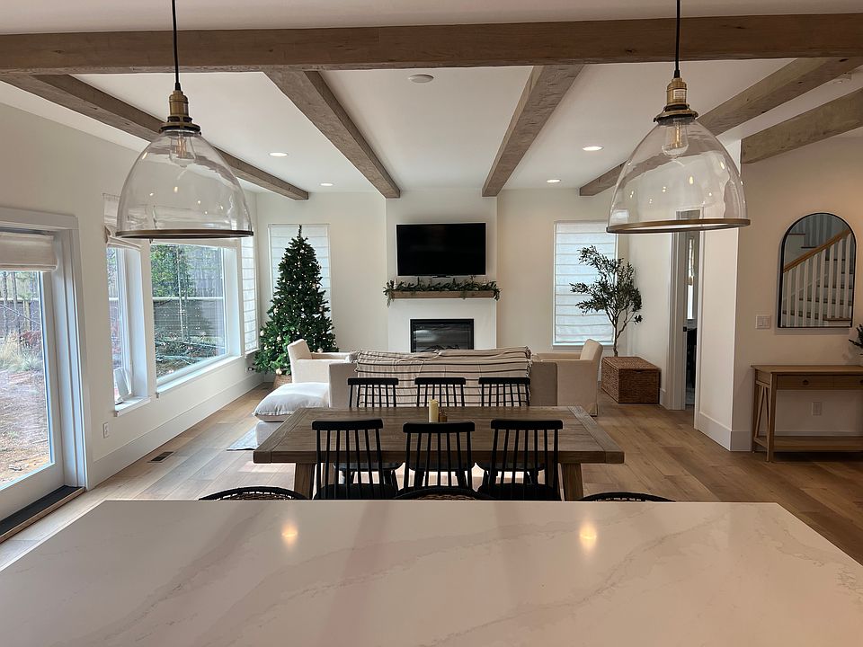 New fully furnished elegant mountain farmhouse style, 5 bedroom / 3 bath home on half acre, built in 2023. Large front yard and the backyard backs up to National Forest land with friendly neighbors on both sides. Backyard trial is a 3 minute walk to the riverbank of the Deschutes. Hot tub. Two car garage. EV charger. Washer/Dryer.