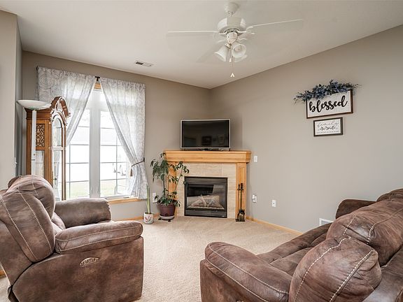 GROUND FLOOR LIVING! This move-in ready townhome offers comfort, convenience, and a fantastic layout. Forget the yardwork—association living takes care of it for you so you can spend more time enjoying life. Ideally located near shopping and dining! Step inside to an open floor plan featuring a well-equipped kitchen with maple cabinets, breakfast bar, and all appliances included. The spacious great room is centered around a cozy corner fireplace—perfect for Iowa winters. Enjoy peace of mind with big-ticket updates already done: furnace 2019 and water heater new in 2017, plus a dishwasher, washer, and dryer new in 2023. The primary suite includes a private bath and walk-in closet, while the second bedroom sits near another full bath and the laundry area for easy everyday living. A detached one-car garage provides parking plus extra storage. With low association dues and easy access to everything you need, this townhome is the perfect blend of comfort and convenience.