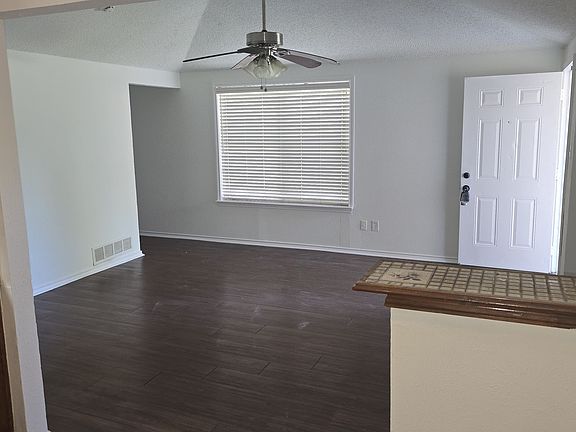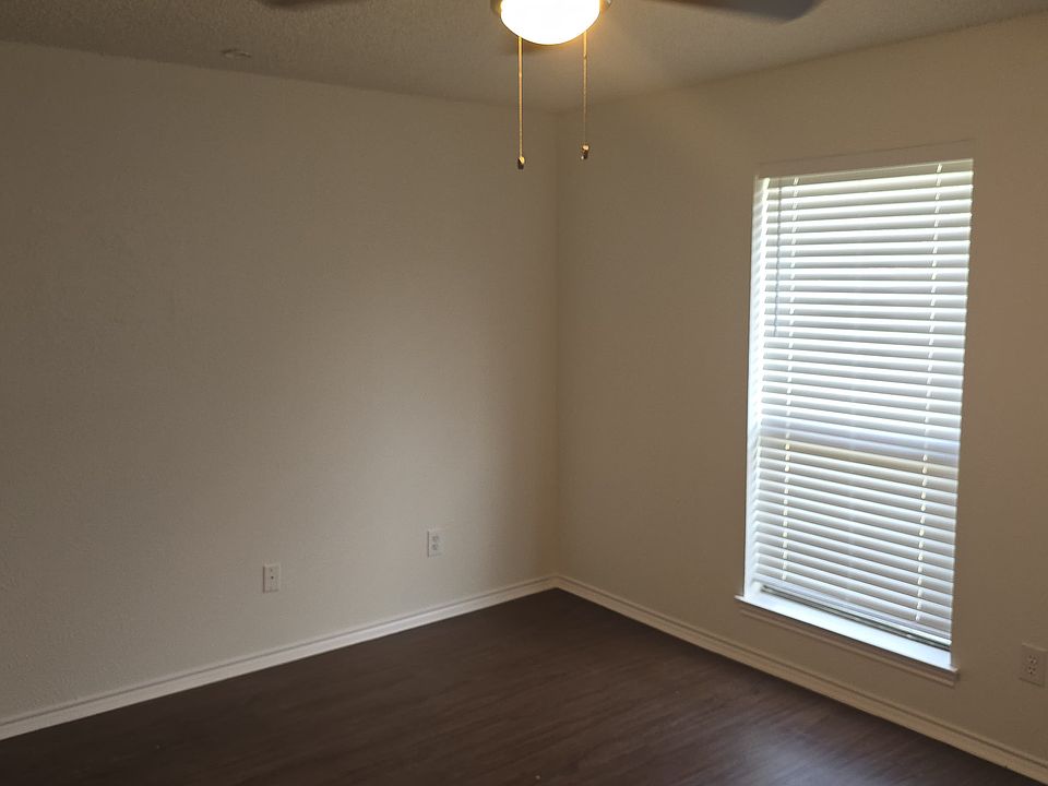 Vinyl plank flooringLarge backyardSplit bedroomsFresh two tone paintElectric rangeKitchen comes with dishwasher