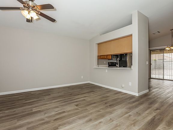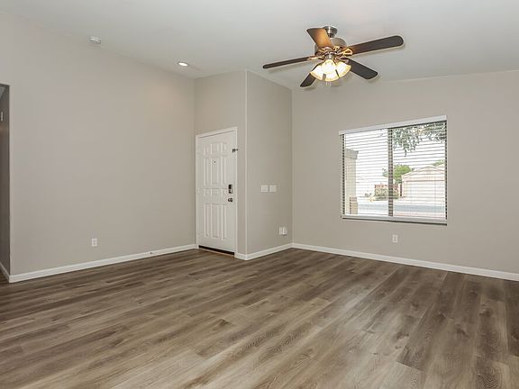 This single-story smart rental home with three bedrooms, two bathrooms and 1,034 square feet of space in Gilbert, AZ is a must-visit. Go to the living room, where you will find a ceiling fan with light and beautiful flooring. The kitchen comes with stainless steel appliances, a pantry, attractive countertops and ample cabinet space. You will love the overhead chandelier in the dining room. A ceiling fan, a window, a walk-in closet and vinyl plank-look flooring are the main features in the primary bedroom. The en-suite bathroom will impress you with its oversized bathtub. You will find a two-car garage at the front and a deck and fenced-in yard at the back. Take your tour of this rental home today!