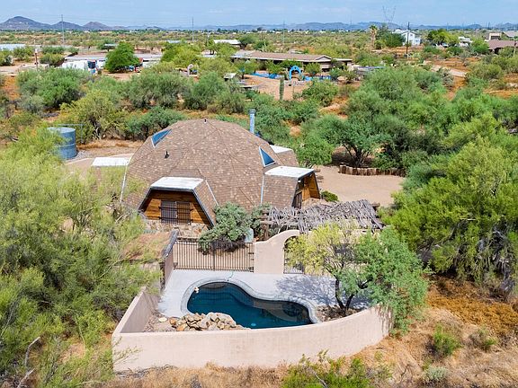 This desert oasis hideaway located in the Carefree area is just minutes from historic Cave Creek and Scottsdale. Featuring a unique geodesic dome design, this 1700sf home is built for style and comfort. Inside you will find a 3bed 2.5bath design with a private loft-style bed and bath upstairs. Downstairs features a beautiful remodeled kitchen with built-in fridge and stovetop/oven combo, that gives way to a cozy living room and dining area. A desert courtyard with built-in rustic bbq is perfect for entertaining guests. Renter is responsible for electric, water and trash.