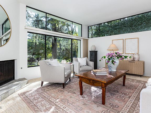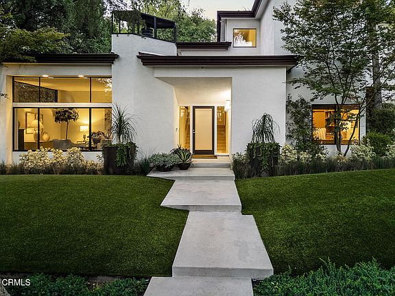 Framed by majestic deodar trees, this sculptural contemporary home blends architecturalsophistication and warm California modern living. Its striking frontage and manicured landscape offer instant curb appeal, while expansive glass walls fill the interior w/ natural light, blurring the line between indoors and out. Thoughtfully designed to frame tranquil garden views, each space embraces its lush surroundings, creating a serene, resort-like atmosphere where elegance and nature coexist in harmony. Located in one of the area's most desirable neighborhoods and within the award-winning La Canada Unified School District, this move-in ready home combines comfort, functionality, and design excellence. A flowing floor plan unites open gathering areas with private retreats, creating a seamless blend of livability and sophistication throughout. Four spacious bedrooms plus a flexible office with closet can serve as a fifth. Lauzon maple flooring, bespoke cabinetry, and European hardware highlight refined craftsmanship at every turn. One bedroom includes a built-in desk and custom Murphy bed with a quality mattress, offering dual convenience for guests or work-from-home living. Every room feels light-filled & thoughtfully connected, emphasizing calm, balance, and comfort through intentional design choices. The living and family rooms each feature gas fireplaces with recirculating systems and custom logs, adding warmth and ambiance while maintaining efficiency. The chef's kitchen serves as both a design statement and a culinary hub, featuring custom cabinetry, quartzite counters, top-tier appliances, and a fireclay sink with integrated filtration.Smart features include Nest thermostats, Kasa lighting, WiFi security, and a Rainbird irrigation system for effortless modern convenience. Outdoors, the sparkling solar-heated pool offers year-round enjoyment surrounded by sustainable turf, mature greenery, and complete landscape lighting. Multiple patios extend living spaces for entertaining, relaxation, & connection to nature in a peaceful, private environment. An attached garage, a rare feature in Southern California, provides direct access, generous custom storage, built-in electrical access, & a remote-operated door system for convenience & ease of everyday living.Perfectly positioned near shops, dining, hiking trails, & major freeways, this refined California Modern retreat offers tranquility, sophistication, & timeless appeal. Don't miss seeing this spectacular home!
