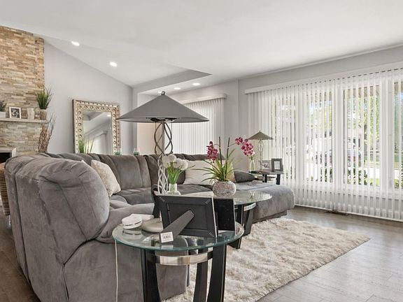 This meticulously maintained ranch pairs great curb appeal with standout interior features you won't find anywhere else on the market. Soaring vaulted ceilings, a dramatic slate fireplace with a high-end gas insert, and rich oak trim and solid interior doors give this 3-bedroom home a warmth and character that rises above the ordinary. Beneath the surface, everything has already been updated for peace of mind: newer insulation and drywall, engineered hardwood floors, a tankless water heater, oversized vinyl windows, and a powerful A/C system. Outdoors, the fully fenced yard delivers privacy and the best outdoor space on the block, while serene lake views and an adjacent park provide a rare sense of openness. The detached, heated, fully finished 3-car garage with 100-amp service is a dream setup for anyone needing serious workspace, storage or room for multiple vehicles. With schools just a short distance away and all major systems refreshed within the past five years, this home blends lifestyle and longevity in one unbeatable package.