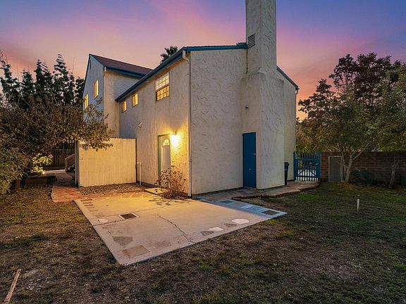 Just three blocks from Sunny Cove Beach, this Mediterranean-style home offers 2,304 square feet of potential on a peaceful cul-de-sac in a sought-after coastal neighborhood. A true diamond in the rough, the home features timeless Mediterranean details, including wood floors, arched accents, and abundant natural light throughout. The open kitchen offers tile counters, oak cabinets, and a casual flow into the formal dining room with open-beam ceilings and a sliding glass door to the enclosed sunrooman inviting space with Saltillo tile floors ideal for morning coffee or relaxed gatherings. The spacious family room continues the open-beam motif, enhanced by a wood stove insert framed in slate tile and a convenient laundry closet. Up a half flight of stairs, three comfortable bedrooms and two full baths provide ample space for family or guests. The private backyard features a cement patio and Saltillo-tile walkway, perfect for outdoor dining or lounging. With some TLC, this home can shine once again as a coastal retreat near the sand and surf.