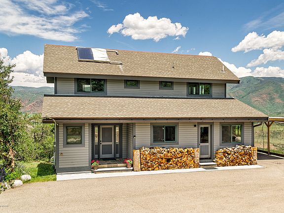 Spectacular sunrise and sunsets from this delightful 3 bedrooms, 5 bath home with a detached care takers unit. Enjoy the spacious open floor plan an abundance of windows to welcome the outdoors in or relax on your custom covered deck with views extending to Independence Pass. This recently built energy efficient home sits on 2.5 acres and is easy to love with 2 separate living areas, solar hot water, additional office, wood stove, hardwood flooring, whole house audio system, mechanical window shades and large master suit with private deck. Oriented for maximum energy efficiency to capture all the energy the sun has to offer, includes solar hot water and ready for seamless photovoltaic. Located in the Aspen school district with plenty of parking including 1 car garage and carport