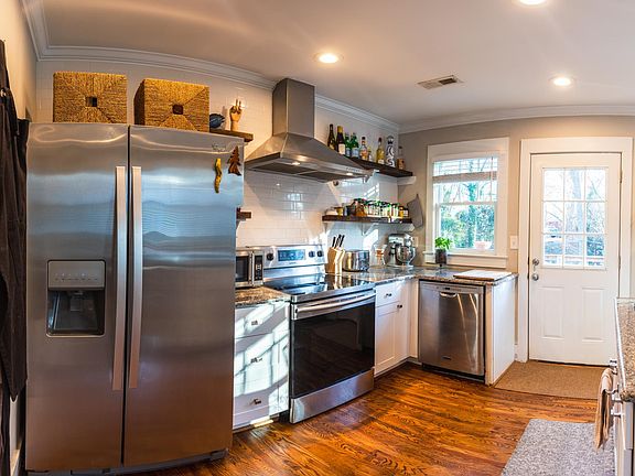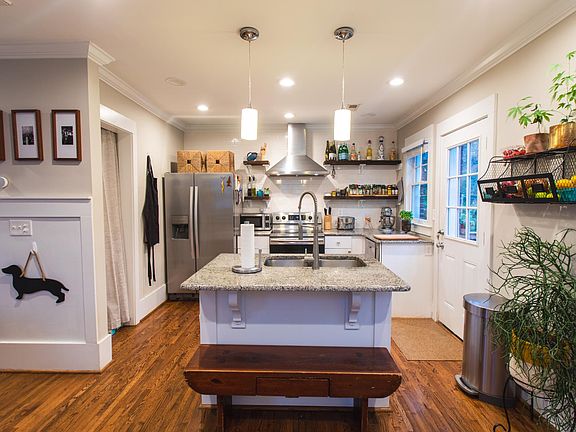 Gorgeous updated home in Historic Wilmore! Modern open floor plan in living area featuring kitchen with island, stainless steel appliances and open shelving. Huge fenced-in backyard with deck and firepit. Walking distance to South End, Light Rail, Bank of America Stadium and short commute to Uptown.