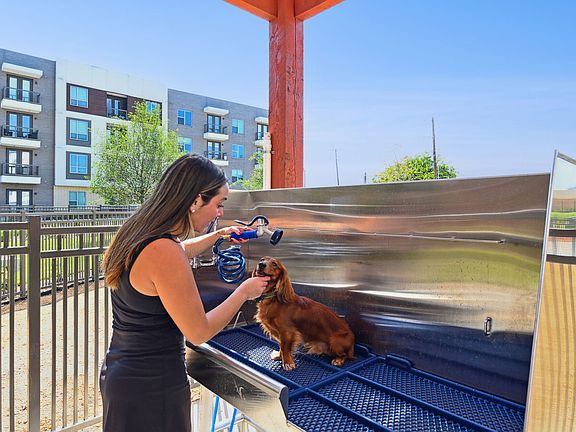 - Exterior features: *In Select Units, Access Control, Bicycle storage, Business Center, Corner unit, Cozy Fire Pit, Cyber Cafe, Direct Access, EV Charging Stations, Fitness Facility With Strength And Cardio, No Patio, Online Rent Payment, Outdoor Grills and Dining Spaces, Package Receiving, Pet Park, Private Detached Garages, Private Offices, Proximity to Retail, Stand Up Shower, TV Lounge