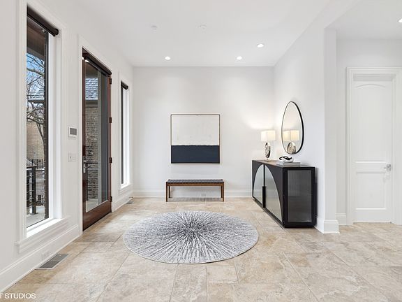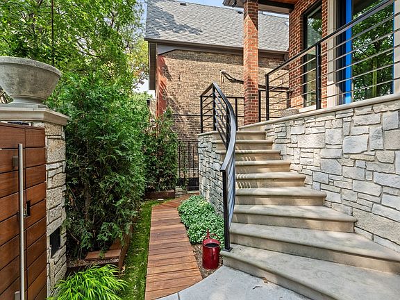 Completely customized 8,000sf DOUBLE LOT residence with newly rebuilt ATTACHED 5 car garage situated a half a block from the 606 on prime block of Bucktown. Built by renowned developer Environs and substantially renovated in 2019. Charming exterior sets the stage for the home's quality of craftsmanship from the Spanish tile roofing and decorative corbels, to the Ipe privacy fencing with lush landscaping and Ipe wood walkways. Thoughtful and ideal floorplan flooded with light, welcoming foyer, spacious and bright formal living room and dining room, 2 powder rooms, sunken great room with 12' ceilings overlooking fabulous outdoor spaces and car collectors' dream garage. Newly renovated chef's kitchen boasts commercial grade appliances, walnut and stainless steel countertops, breakfast nook, walk-in pantry and office off of the kitchen. 2nd level features 4 generously sized ensuite bedrooms with heated flooring in the bathrooms and one of two laundry centers. Impressive primary suite features incredibly spacious bedroom with gas fireplace, 2 huge walk-in closets, and luxurious bathroom with oversized steam shower, and new soaking tub. Lower level features radiant heated flooring, spacious and bright family room, 1 ensuite bedroom, large office, additional powder room, abundant storage, and massive new home exercise center with sauna. Completely redesigned outdoor spaces creating a secluded oasis well-appointed with beautiful tall trees, a large water feature, and a synthetic turfed yard, Ipe stairs leading to a tremendous extra wide garage roof deck made of Ipe wood. Large spiral stair leading to semi finished roof. Coveted mudroom leading to attached 5 car dream garage with exceptional elements such as its own HVAC, 12 1/2' ceilings, professional lighting, plenty of space for a workshop, monitors for the home security system, and a glass garage door to the interior yard. Top end security cameras, audio visual & internet system with central controller, electric blinds and home generator. Nestled on tree-lined Honore in the heart of Bucktown with an extra wide alley, convenient access to 90/94, blue line, Metra, restaurants and boutiques on Damen, Churchill and Walsh Parks, & neighborhood favorites such as Etta, Club Lucky, and the 606 Trail.