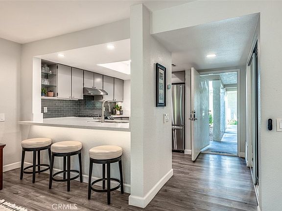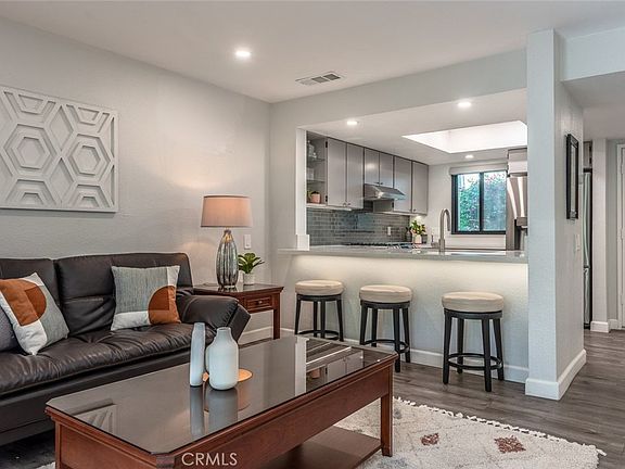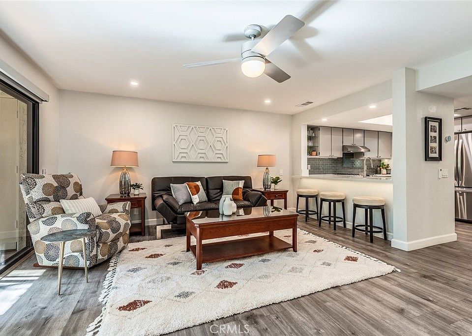 Largest 1BR floor plan at Riviera Gardens—plus the rare kitchen window. | Fully remodeled with a clean, contemporary look: quartz counters, updated cabinetry with under-cabinet lighting, newer GE appliance suite, and an island with additional ambient and task lighting. | Spacious bedroom suite features an ensuite bath and custom built-in closet. | Storage is a standout: there's an extra closet in the bathroom, a roomy entry-hall closet, and an additional closet on the patio—tons of storage throughout! | Inside laundry (full-size washer/dryer) and a brand-new water heater. | Further Upgrades include luxury laminate flooring, updated ceiling fans (Living, Bedroom and Patio!), flush recessed lighting on Wi-Fi dimmers, and custom motorized blackout shades (also Wi-Fi). | New double-pane windows in the kitchen and bedroom boost comfort and efficiency.