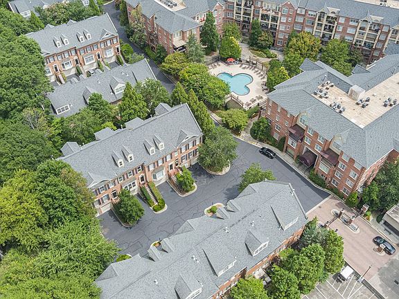 The aerial views reveal the full picture: this complex is surrounded by mature tree canopy while the Atlanta skyline rises just beyond. You get urban convenience wrapped in suburban tranquility. The community pool adds resort-style amenities, and your end-unit position keeps you comfortably distanced from weekend activities if you prefer.