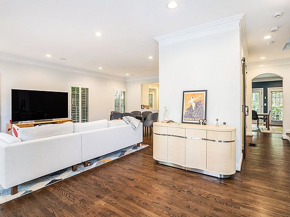 Step through the entry and immediately feel the difference quality makes. Rich hardwood floors ground the main level while refined crown molding and plantation shutters create an elevated atmosphere. The living room flows naturally into the dining area with intelligent design that makes entertaining feel effortless.