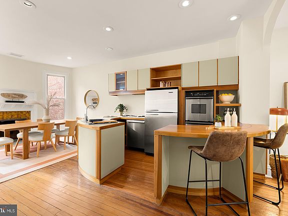 Welcome to the Dupont Circle neighborhood, rich in history and culture. This address, on one of the most coveted blocks in the city, is steps to the Red Line Metro, bus lines, 2 dog parks and quality shopping. Whole Foods, Safeway, restaurants, clothing shops and services make this an urbanite’s dream. It boasts 23 large windows, high ceilings, trim moldings, wood flooring, recessed lighting and six fireplaces with original ceramic tiles and mantles —characteristic of Washington’s charming Victorian houses. A key attribute to the house is the separate, fully-equipped English Basement apartment- an income producing bonus. It is a separately metered, 1-bath, 1- bedroom, living room/dining area plan— with full-sized, above ground windows in each room. Additionally, an outside private patio features plantings, table and chairs for relaxing, inviting friends, grilling/eating. The first floor’s open concept boasts an architect’s sculptural custom kitchen design. Located between the living room and dining area, it was featured in the Washington Post and The Washington Times magazines. The powder room is steps to the landing. The second floor has generously sized rooms, one with 5 windows and an arched opening. The second bedroom has a walk-in closet. The bathroom was renovated with double sinks, abundant storage, artful tiling and marble floors. The third floor has 3 rooms: a large bedroom with balcony, another large skylit bedroom and a smaller room—possibly for a home office or nursery. An updated full bath is down the hall. The interior lower level houses laundry, storage and utilities. Recently installed roof solar panels -- which are owned and do convey-- reduced the Pepco bill to $16/month in 2025’s hot summer. Other outstanding features: copper plumbing, main lead line replaced, replaced windows, a central vacuum and industrial rubber roof.