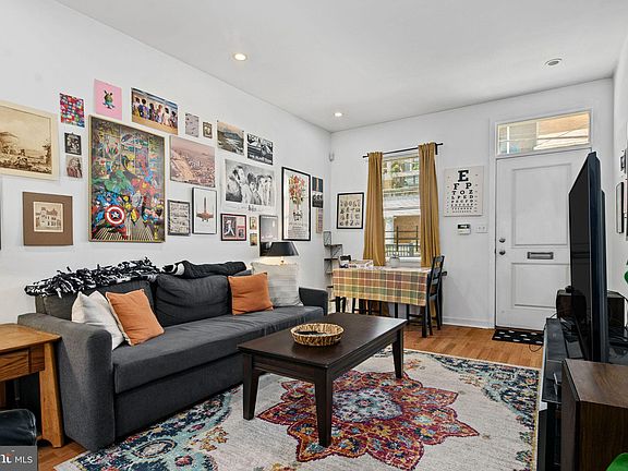 Welcome to this lovely row home tucked away off of Palmer Park right in the heart of Fishtown. Situated on a quiet block just steps from Frankford Ave, this spacious 2 bed, 2 full bath home with over 1300sq/ft of space is ready to move in. The main floor consists of an open living area with hardwood floors and recessed lighting, leading to a well-appointed kitchen featuring a dishwasher, refrigerator, gas range, and ample cabinet space. Off of the kitchen, you will find a rear patio, perfect for gatherings and outdoor dining. Upstairs on the 2nd level, you will find a spacious bedroom with a large closet and a hall bathroom with a stall shower with subway tile and a window that allows natural light to flood the space. Continuing up to the 3rd floor, you will find the primary bedroom with access to a private balcony, multiple closets, and a spacious and sunny full bath. Downstairs, the full, unfinished basement provides tons of storage and a washer/dryer for added ease. Other features include a brand-new HVAC installed just in time for the late-summer heat, hardwood floors throughout, and great natural light. This prime location can't beat with Palmer Park and Palmer Doggie Depot right there as well as restaurants/bars like LMNO, Kayala, and the International, to name a few. Commuters will also enjoy quick access to the Market/Frankford Line as well as multiple bus stops nearby. Also located in the Alexander Adaire catchment. Don't miss this opportunity to experience Fishtown living at its finest!
