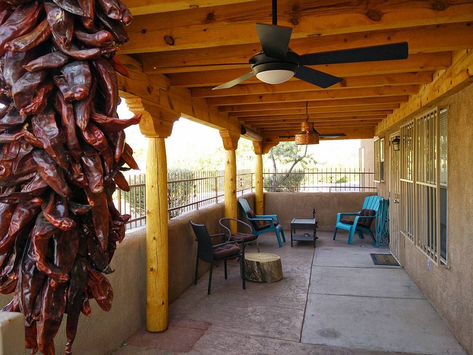 Adobe style townhome with a beautiful 270 sf covered porch and single car garage. Polyurethane roof from 2014, with 15 year transferable warranty. Ikea kitchen 2015, very practical with drawers and elevated dishwasher. Beautiful teak accent, artist/carpenter made countertop. Cork floored kitchen and dining area. Non smoking household. Both bathrooms renovated with new toilets, new vanities. Beautiful and practical Ikea Algot clothes storage system in the bedroom. The garage features a workbench, tool organizer and cabinets. Ceiling fans throughout, Ikea light fixtures, Ikea shelving. Convection oven, HE washer and dryer, microwave are all included. Built in shower seat in Master bath. Extra wide doorways in master bedroom. Close access to I-40, Old Town, Bosque trails, Starbucks, The Range Cafe, Walgreens and shopping. This is the perfect home for a happy and simplified life. Furniture conveys as an option. All curtains, blinds, shower curtains and brand new towels stay. BBQ, patio furniture and pillows are included, except for the chair hammock. Home inspection was done on 3/28/2018 by Pillar to Post.