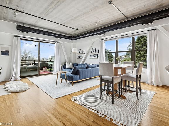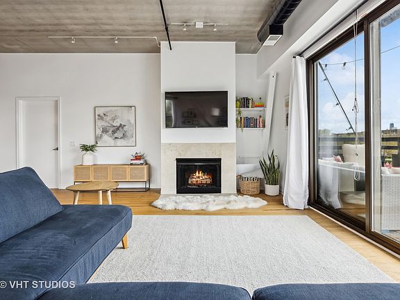 Charming and elegant 2 bed 2 bath corner unit with parking included. This Lincoln Park concrete loft has a desirable split floorpan with spacious bedrooms and in-unit washer/dryer. Lots of updates including new furnace and a/c (2023) and water heater (2023). Open concept kitchen with new dishwasher (2024), refrigerator (2022) and granite countertops. Huge kitchen peninsula with tons of storage. Large living room/dining room space has real hardwood floors and is showered in south and west natural light. In the living room there is a cozy ceramic gas fireplace and large sliding glass door that leads to your private balcony. Cool exposed professionally painted ductwork adds to the modern loft feel. Primary suite features a spacious walk-in-closet and en-suite bathroom. The bedroom easily fits a king bed and desk. The primary bathroom includes a large double vanity with new matte black hardware and shower tub combo. The sizable second bedroom has large west facing windows, closet, and room for a king bed and desk. Both bedrooms have new carpet (2023). The second full bathroom is conveniently located nearby off the hallway. Incredibly pet friendly building with its own private dog park. Secure gated exterior car parking included and two extra storage units (one closet in hallway by unit, and one cage in basement) both included. Convenient fitness center located in the building and included in your monthly HOA. Secure access building with butterfly intercom system, and common bike room. Easily accessible to 90/94, and CTA bus stop outside the front door on Diversey. Jewel Osco , Costco and Clybourn Commons are only a couple blocks away. Close proximity to neighborhood favorites like Hexe Coffee, Bonci, and Cody's Public House.