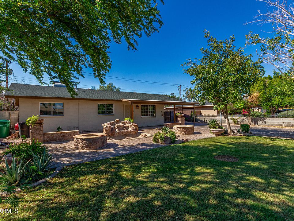 This home is ready for your holiday gatherings, with fire pits, pavers, seating, paved areas for tables or games. Block and iron fencing allow for street visibility with additional security of pets or kids in the front yard. For the most durable and easy to clean flooring there is tile throughout the home. The kitchen has upper cabinets, with lower storage areas inspired by traditional Mexican kitchens of the south. Made of block the home will help keep cool in the summer and warm in the winter. With 4 bedrooms and 2 bath, this home offers a rarity in that two bedrooms that share the master bathroom/laundry room which is a great way for two or more households/generations to live under one roof. Come check it out!
