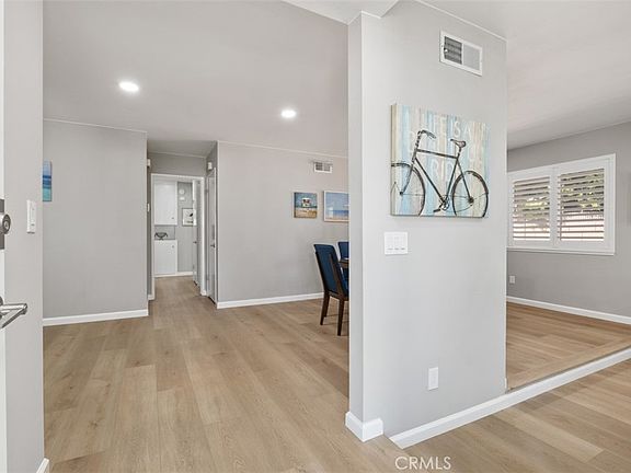 Welcome to this beautifully updated single-story home just minutes from the ocean. Featuring 3 bedrooms and 2 bathrooms, this home offers the perfect blend of modern upgrades and coastal charm. Step inside to find an inviting remodeled kitchen with luxury vinyl plank flooring, smooth ceilings, and recessed lighting that create a bright and airy atmosphere. The master bedroom boasts an en suite bathroom that have been tastefully updated with contemporary finishes. Enjoy year-round comfort with dual-pane windows and elegant plantation shutters, providing both energy efficiency and style. A brand-new roof ensures peace of mind, while ample storage space keeps everything organized. Outside, the private backyard offers the perfect space for relaxing or entertaining under a covered patio. Don’t miss this incredible opportunity.