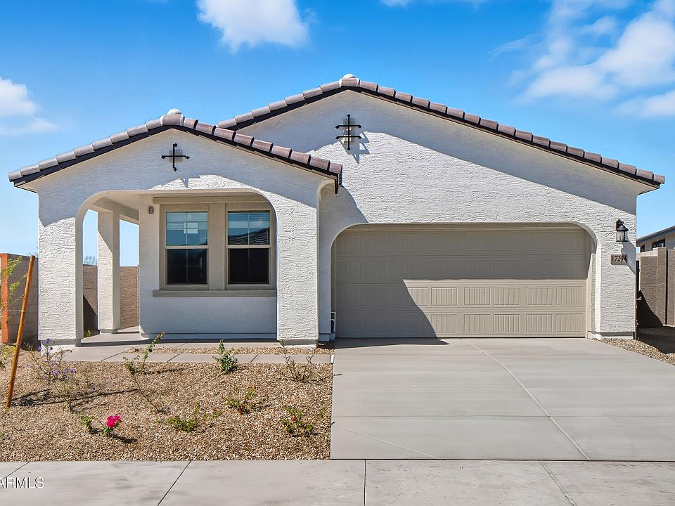 Welcome to this beautiful single-story home located in the heart of Goodyear.  This stunning new construction home has 3 bedrooms and 2 bathrooms, offering ample space for comfortable living. The 1841 sq ft home includes a spacious great room, a modern gourmet kitchen, and cozy dining room.  The primary suite boasts a large closet while the additional bedrooms provide plenty of room for family or guest.  Step outside to enjoy the large patio on 6461 sq ft lot, perfect for entertaining and relaxing. Additional highlights include upgraded kitchen counters, cabinets, tile throughout with carpet in the bedrooms, and a 2-car garage. Located in the desirable Estrella masterplan featuring 2 state-of-the-art residents clubs including fitness centers and pools.