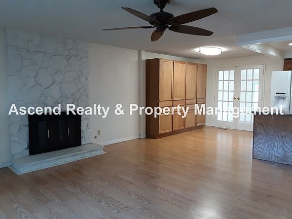 This split level 4 bed/2 bath home has so many great features! Its tucked back in the neighborhood and located on a cul de sac. Open kitchen/dining/living area with move-able island, lots of pantry/storage cabinets and nearly new appliances. Living area has gas fireplace and ceiling fan. Charming room off dining area could be for studio, office or play room. Kitchen includes dishwasher, microwave, refrigerator, garbage disposal and electric range. Both upstairs bedrooms have ceiling fans. Light & bright basement has potential as in law quarters. Small secondary kitchen off main downstairs room has sink & refrigerator. This area has a door to fantastic outdoor covered patio with 2 ceiling fans. 2 additional downstairs bedrooms, 1 bath and laundry room complete the lower level. Laundry has washer/dryer hookups. Home has central AC & gas heat. 2 car garage with opener and lots of storage. Back yard is fully fenced and has sprinkler system and 10x12 shed. 2 small pets negotiable with additional deposit and monthly pet rent. No smoking/vaping. One year lease. Resident responsible for yard care and all utilities including water/sewer, natural gas, electricity & garbage.