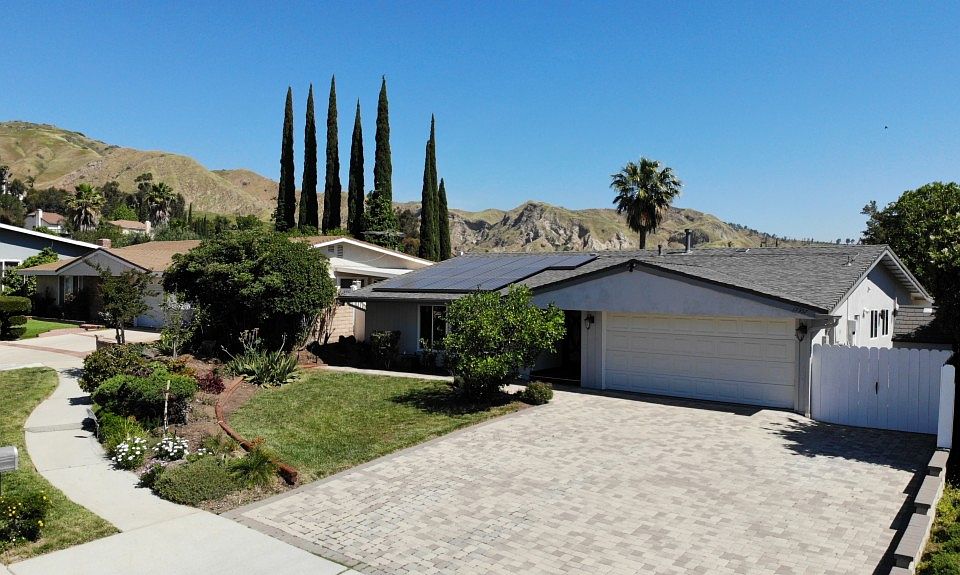 This is the mid-century modern home you've been waiting for. All of the mid-century charm with 21st century conveniences. Let's start when you walk through the front door, you will see a wall of windows through which you will find an absolute fabulous view, Pebble Tec pool, and bbq island! Check out the brand new kitchen with tons of storage, duel colored cabinets, pull out shelves, quartz counters with 9' peninsula, new appliances, and so much more! The open floor plan features living room, dining room and wet bar combination, vaulted ceiling, refaced gas fireplace and custom paint colors. The master bath features a stand-alone shower with 2 shower heads, plus a spa tub with another shower head! The dual master vanity is set up for your grooming needs with built in power and sliding shelf. The other bathrooms have all been renovated with a new tub/shower and new vanities. All 4 bedrooms have vaulted ceilings and lots of closet space! New luxury vinyl flooring through out with thick comfy carpet in the bedrooms. Solar power! Now let's talk location... At the top of a family friendly neighborhood in Granada Hills, on a cul-de-sac, and so close to O'Melveny Park. All the features of this home, can't fit in this space.