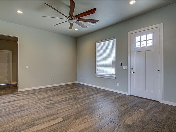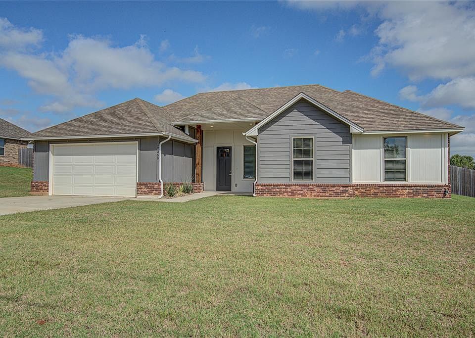 This 4-bedroom, 2-bathroom home on a 1 acre offers rural peace with modern convenience. Inside, you'll find beautiful wood-like tile flooring throughout and a handy mud bench helps keep you organized. The kitchen features freshly painted kitchen cabinets, stainless steel appliances and a practical breakfast bar/island making the kitchen the heart of the home. The primary bedroom includes an oversized closet that connects directly to the laundry room, walk-in shower, garden tub, and double vanities! The study with built in bookcases provides the perfect space for work or hobbies. The exterior features a covered front porch and back patio perfect for relaxing outdoors, and a wood fence for privacy.