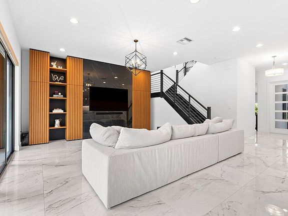 17359 Sparkling River Road is a genuine feeling of living in paradise. This exceptional Moorea model boasts luxury and elegance at every turn beckoning you to relax and enjoy all the beautiful surroundings and amenities that the upscale community of Lotus in Boca Raton offers.The focal point of this 4 bedroom 4 bath modern residence with $400,000 worth of upgrades is the outdoor living space. The custom saltwater pool and spa, offers the perfect setting for ultimate fun and relaxation. The outdoor natural gas grill and kitchen is delightful for entertaining and culinary experiences. Upon stepping outside you will be impressed by the Porfido pavers with poured concrete underneath , ensuring a stylish and durable outdoor space for all your outdoor gatherings and activities along with 2 Veranda that allow for additional outdoor enjoyment. This home offers an array of impressive features, including beautiful wall units in the great room and loft that was custom designed and imported directly from Italy, a stunning epoxy garage floor, a Sonos System, an expanded driveway, and upgraded tile throughout the first floor. The upgraded wood flooring on the stairs and loft add warmth and character to the living spaces. You will be captivated by the upgraded modern railing on the staircase that guides you to the upper level. Indulge in the luxurious primary bathroom featuring a spa tub, creating an idyllic retreat for relaxation and self-care.