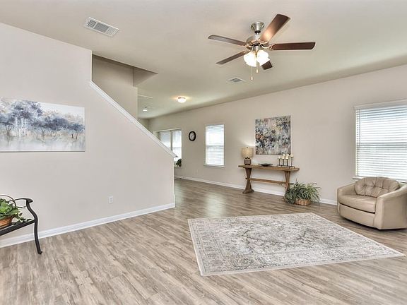 Welcome to your new home in the beautiful Valley Vista subdivision, surrounded by rolling hills, mature trees, and scenic views. This well-maintained 3-bedroom, 2.5-bath home offers an open-concept layout filled with natural light and warm wood-look laminate flooring throughout the main level. The stylish kitchen features stainless steel appliances, quartz countertops, an oversized pantry, and a huge under-stair storage area. The spacious laundry room includes space for a secondary fridge or freezer, and a washer and dryer can be provided upon request. Upstairs, the primary suite impresses with two walk-in closets, dual vanities, and a walk-in shower. Two secondary bedrooms are bright and versatile perfect for guests, kids, or a home office. Enjoy outdoor living in your landscaped backyard with low-maintenance artificial turf (approx. 42' x 134') shaded by majestic Live Oak trees. The detached garage, accessed via Konza Path, adds convenience and curb appeal. Just steps from a public park and scenic trails along the San Gabriel River, and minutes from Hwy 183, Ronald Reagan Blvd., the new H-E-B Plus, and local dining. Zoned to top-rated schools, this home offers comfort, convenience, and charm all in one beautiful package.