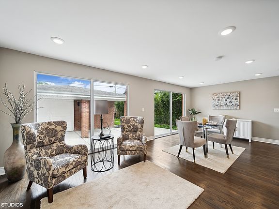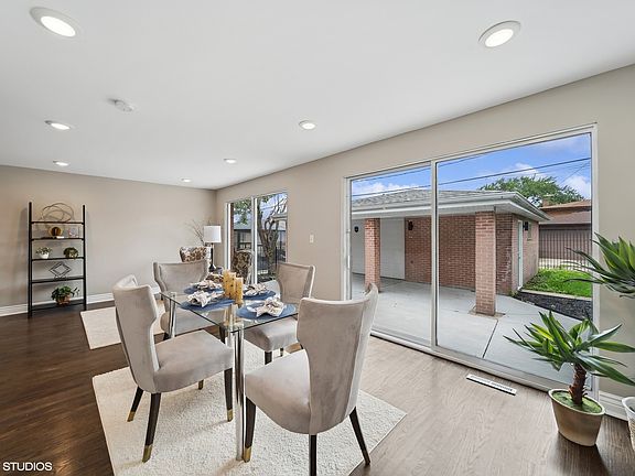 Mid-Century Modern three+ bedroom/two and half bath home has it all! Delight in the modern design that keeps your privacy with its wide lot and discrete doors. This light-filled home with huge windows, open floor plan tamed by the different levels and kitchen walls is simply a design marvel. Speaking of kitchens, this completely redone eat-in kitchen has ample quartz counters, sleek flat panel cabinets and stainless-steel appliances. Off the dining and living rooms, the huge patio windows/doors create seamless indoor to outdoor living that is perfect for entertaining and relaxing. Upstairs are three spacious bedrooms filled with light. One bedroom has a fun lofted area and one easily fits a king bed. The lower level is all about relaxation. Step down to the lower level to a wonderful recreation area or even a guest room as it has a full bath and private entry. The back offers a two car brick garage with solidly built weather overhang and party door, and large patio with lovely side yard space. Move-in ready peace of mind: new HVAC, roof, windows, garage doors, concrete and newly finished lower level with completely new bathroom. Additionally, spot tuck-pointing, kitchen, baths, electric and plumbing were updated. The Pill-Hill location is superb with loads of shopping and near public transportation as well as easy access to the Skyway, public parks and Lake Shore Drive. Call us today for a private tour; you will be glad that you did!