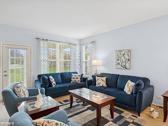Have you been looking for SINGLE-STORY living in a 55+ COMMUNITY? This METICULOUSLY MAINTAINED end unit has an open, easy-to-navigate floor plan and tons of windows for beautiful natural light. KITCHEN has solid surface counters, double-bowl sink, gooseneck faucet with pulldown sprayer, pantry, tile backsplash, 42" maple cabinets and stainless appliances. PRIMARY BEDROOM has multiple closets and an ensuite bath complete with double sinks and a step-in shower. An ADDITIONAL BEDROOM has another walk-in closet and there is a BONUS ROOM as well that could be an office, exercise space, craft room or library! Covered back PATIO gives you a view to a grassy green space - and room for your grill! TWO-CAR GARAGE and mudroom/laundry room complete the package! Living at CARILLON AT CAMBRIDGE LAKES includes all the RESORT AMENITIES you would expect from an ACTIVE ADULT COMMUNITY: indoor and outdoor pools, 3-hole golf course, bocce, indoor hot tub, steam room, pickleball & tennis, fitness center, walking trails and more! Newer high efficiency FURNACE (2024), WATER HEATER (2023), FRIDGE (2024) and DISHWASHER (2024). Retire in style and enjoy the LOW-MAINTENANCE lifestyle - snow removal and lawncare are included! Come see for yourself today!