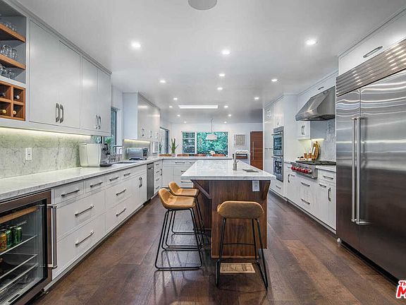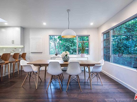 A mid-century modern masterpiece, this spacious one-story home is set behind mature, private hedging in Beverly Hills. Extensively updated, the home has an abundance of natural light, warm wood and clean marble finishes. The open concept living area is anchored by a sleek gourmet kitchen and extends to an expansive deck, perfect for indoor-outdoor living. The expansive primary suite boasts vaulted ceilings and is offset from the rest of the home creating the ultimate zen retreat. The suite also has an oversized custom walk-in closet and a gorgeous spa-like bathroom with a freestanding tub. The backyard is a secluded grassy paradise with plenty of room to enjoy and entertain al-fresco. The garage has been converted to the perfect functional escape, complete with an en-suite bathroom, modern kitchenette, and living area. With greenery visible from every window, this is truly an idyllic escape in the heart of Beverly Hills, moments from prime shopping, dining and nightlife.