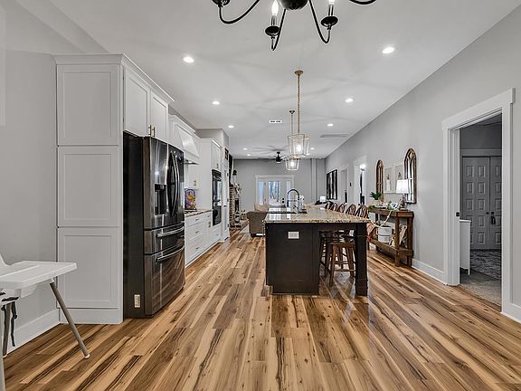 - Features: Kitchen Exhaust Fan, Kitchen Island, Pantry, Stainless Steel Appliances, Solid Surface Counters