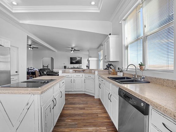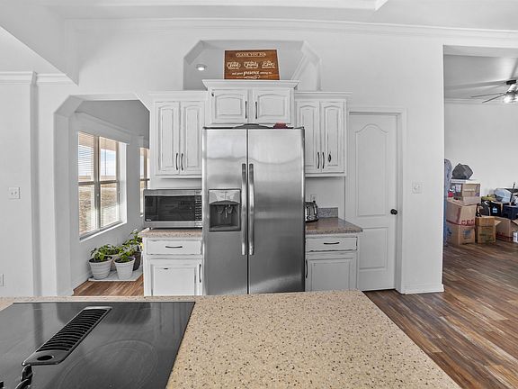 Sellers are now offering 4,000.00 BONUS to the buyers Realtor that brings a full price offer! Listed by Amanda Muller 580-925-0054 Keller Williams Red River Realty Group. Located in Shattuck , Oklahoma is a one of a kind ranch just waiting to be yours! Sitting on 360 is a beautiful stucco sided home with a huge 50x100 5 car garage big enough to fit a motor home or two in. Inside the huge garage is a separate game room with its own half bath and storm shelter. That's not all, this garage has an unfinished second story great for storage or even an office space! As you walk in the home you will see the brand new flooring just professionally laid within the last year. The living room is an especially cozy place to curl up in front of the fire place. The master bedroom is luxuriously spacious in size with matching closet and master bath. The master bath has a beautiful garden tub overlooking the pasture, a separate shower, vanity, and double sinks. The office, just off of the master bedroom, sits next to a half bath for your convenience if running a business from home. That's right; 3 bedrooms, an office that can be converted into a bedroom, and 2 1/2 baths in the house. Along with a game room and another 1/2 bath inside the huge garage. Don't miss your chance to own a 360 acre ranch with this much luxury!