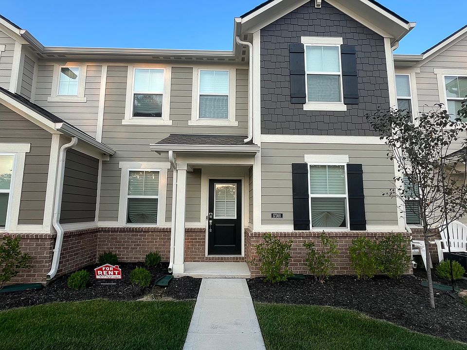 Beautifully designed two-story townhome, offering a spacious and open-concept main floor ideal for comfortable living and entertaining. The first level features a bright Great Room that flows into a modern kitchen complete with a center island, pantry, and cozy dining nook, along with a convenient half bathroom. Upstairs, the primary suite includes an en-suite bath with double vanities and a walk-in closet. You'll also find two additional bedrooms, a full bathroom, a versatile loft perfect for a second living area or office, and a laundry room with a washer and dryer included. This property also offers a generous storage closet and an attached two-car garage with additional space for storage. Residents enjoy access to community amenities including walking trails, a clubhouse, swimming pools, fitness center, pickleball, tennis, and basketball courts. Conveniently located off SR-32 with quick access to shopping, dining, Grand Park, and US-31 providing an easy commute to downtown Indianapolis.