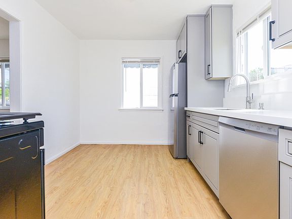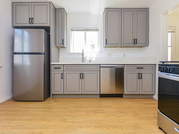 Introducing a remarkable 1 bedroom, 1 bathroom detached home (no shared walls) that fulfills your every desire! This newly renovated haven offers an array of exquisite features that guarantee an exceptional living experience. As you step inside, you'll be greeted by stunning hardwood vinyl flooring, which not only adds a touch of elegance but is also effortless to maintain. The large window bathes the space in natural light, creating an inviting and vibrant atmosphere. Say goodbye to storage woes with abundant storage space throughout the apartment, ensuring a clutter-free environment. The master bedroom boasts a large closet, providing ample room for all your belongings. Unwind in your private, enclosed yard, offering a serene retreat right outside your door. Prepare your culinary delights in style with the sleek stainless steel appliances adorning the kitchen. Discover the modern allure of new shaker cabinets with contemporary finishes, bringing both functionality and style to your living space. The Spanish tile bathroom adds a touch of sophistication and elegance. Water and sewer utilities are included in the rent. And don't worry about leaving your furry friend behind pets are more than welcome here. Enjoy the peace and privacy of no shared walls, providing a quiet sanctuary you can truly call your own. Nestled in a professionally managed building, you can relish the knowledge that your needs will be promptly attended to.