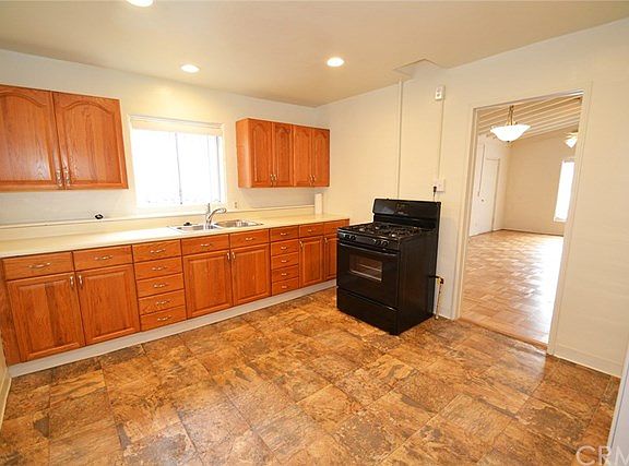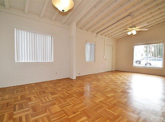 Super nice 2 bedroom free-standing apartment. It is actually a free standing house but is one of 3 units on a lot. This apartment has newly refinished wood parquet flooring in living room & dining area; A newly remodeled full bath (New tub, new tile, new vanity, new plumbing fixtures, new medicine cabinet, new bath flooring). Living room & both bedrooms each have ceiling fan/lights; Both bedrooms have new carpeting. The kitchen has lots of cabinet space + a new stainless steel sink. A separate laundry room is just off the kitchen: washer & gas dryer hook-ups. (fridge, washer & dryer are not included). A detached 2-car garage is in the back w/newer sectional door and auto-opener. No pets.
